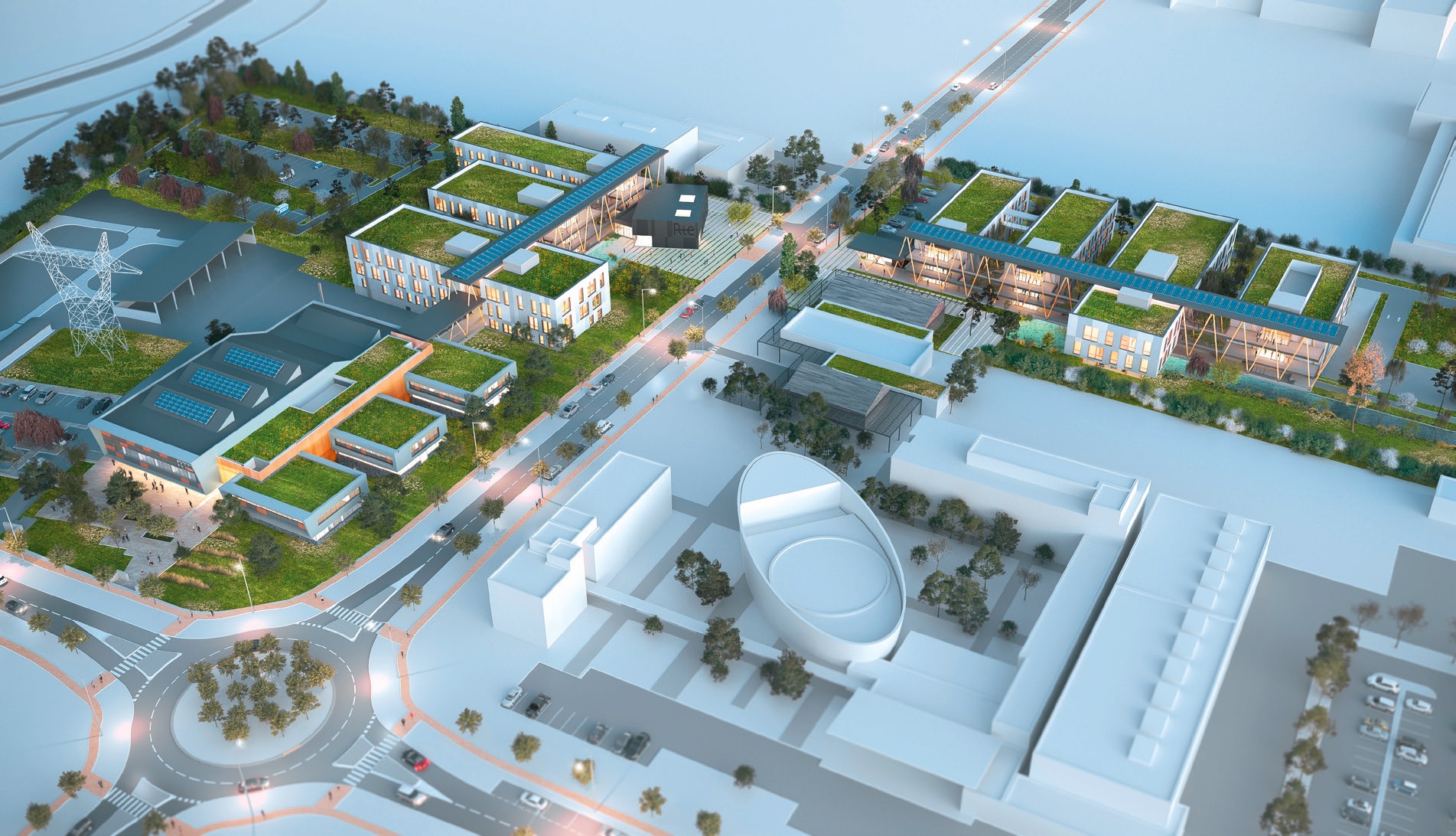 Photo : Perspective du Campus RTE, vue du ciel – © AIA Life Designers